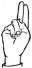 На ћирилици написано РАДИНКА КОЛАР састоји се из 12 слова [?]. Исписано ћириличном једноручном азбуком за глувонеме: